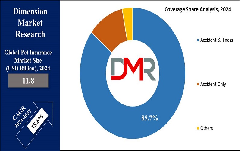 Pet insurance plays an extremely significant part in its accident and illness coverage projected to make up about 85.7% of the entire segment in 2024. Then, it will keep growing It shows no signs of diminishing anytime soon as people seek enrolment with pet insurers for specific reasons like providing financial stability at times when their pets get sick or injured.