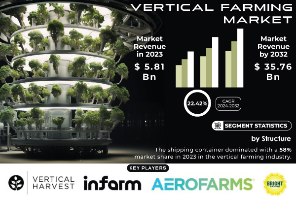 As per the S&S Insider Report,“The Vertical Farming Market is poised for exponential growth, with a market size projected at USD 5.81 Billion in 2023, anticipated to reach USD 35.76 Billion by 2032, reflecting a robust CAGR of 22.42% from 2024 to 2032.